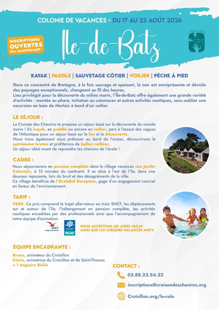 Nous sommes heureux de pouvoir vous proposer une nouvelle colo ! Cet été, l’équipe d’animation a décidé d’emmener les enfants sur l’île de Batz !
