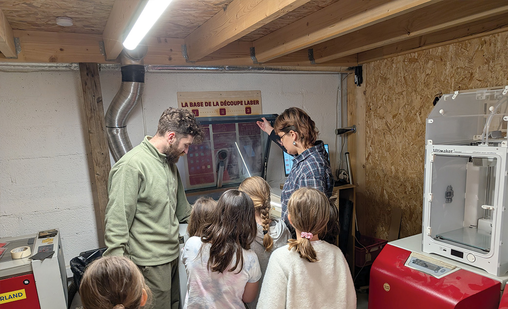 Les enfants ont ensuite exploré le FabLab des Ateliers Éclairés. Ils ont pu observer différentes machines et comprendre leur fonctionnement :