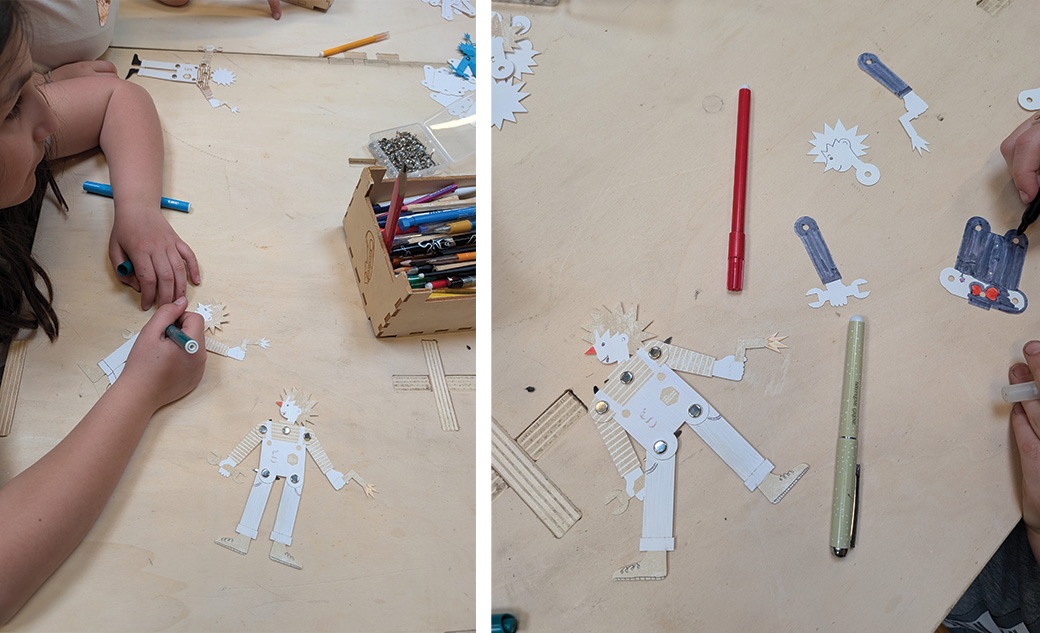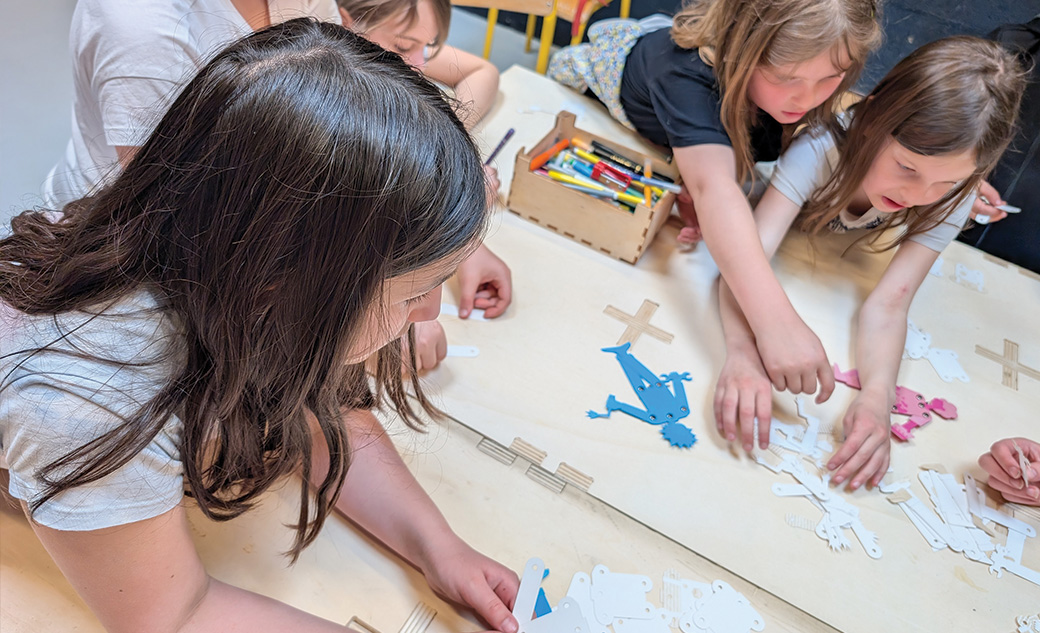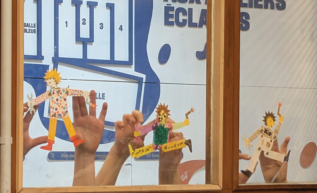 Pour clôturer cette sortie aux Ateliers Éclairés à Strasbourg, les enfants ont participé à un atelier exclusif de fabrication de pantins en papier découpé au laser. Animé par Isolde Klein et Maelys Roulin-Comas, cet atelier leur a permis de créer leur propre personnage. Chaque enfant a ensuite donné vie à son pantin lors d’un petit spectacle improvisé, un moment à la fois créatif et plein de rires.